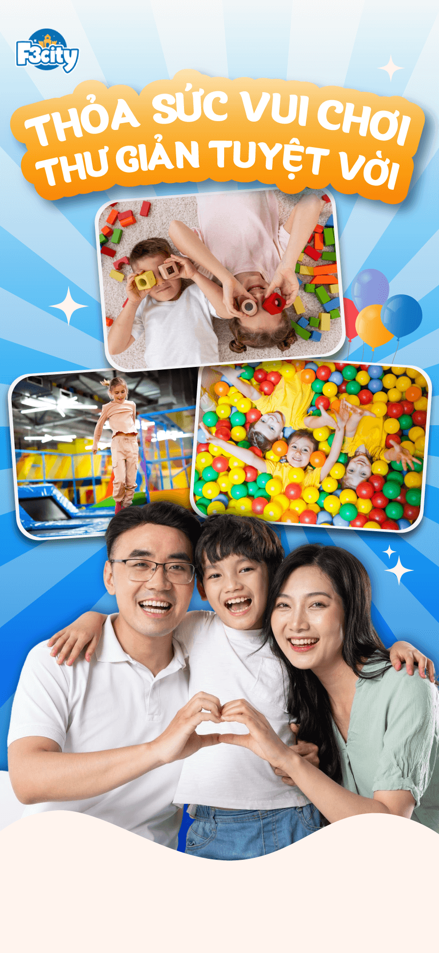 - F3city Nơi bé được chơi vui – ba mẹ được nghỉ ngơi – cả nhà dành nhiều thời gian bên nhau.